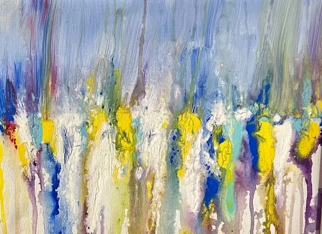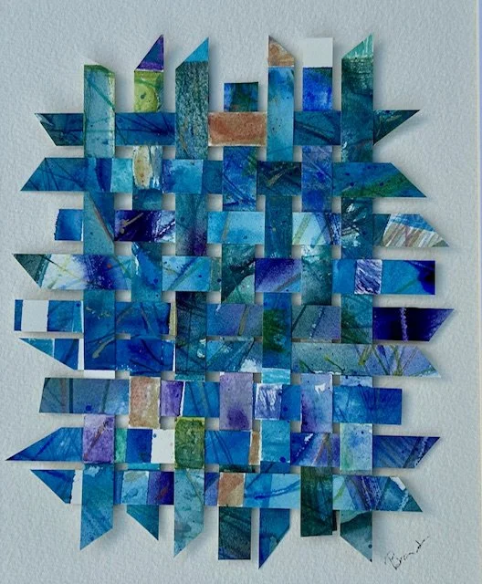 I’ve always been creative but had little time to play and experiment while I was working. I made it a priority to create and teach art in retirement because it contributes to my well-being, facilitates social connections with other artists, and gives me a strong sense of purpose. I draw and paint every day. One of my early projects was a series of paintings that reconstructed my work notebooks into painted paper weavings. With these paintings I was working through my struggle with letting go of work.