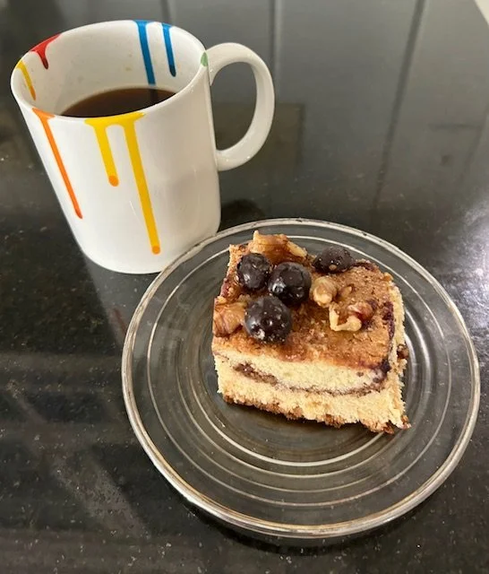 Baking can be deeply satisfying. It is relaxing and rewarding. There is a sense of accomplishment when the treat emerges from the oven and it tastes great! and I’ve learned that precision in measuring is critical to a successful outcome and have acquired some new equipment. Did you know there are baking strips? I chose Rose Levy Berenbaum’s The Baking Bible as my guide. I’ve included photos of blueberry buckle, raspberry upside down cake, and kouign amann. So far, my favorite is the blueberry buckle. I’ll make it again!